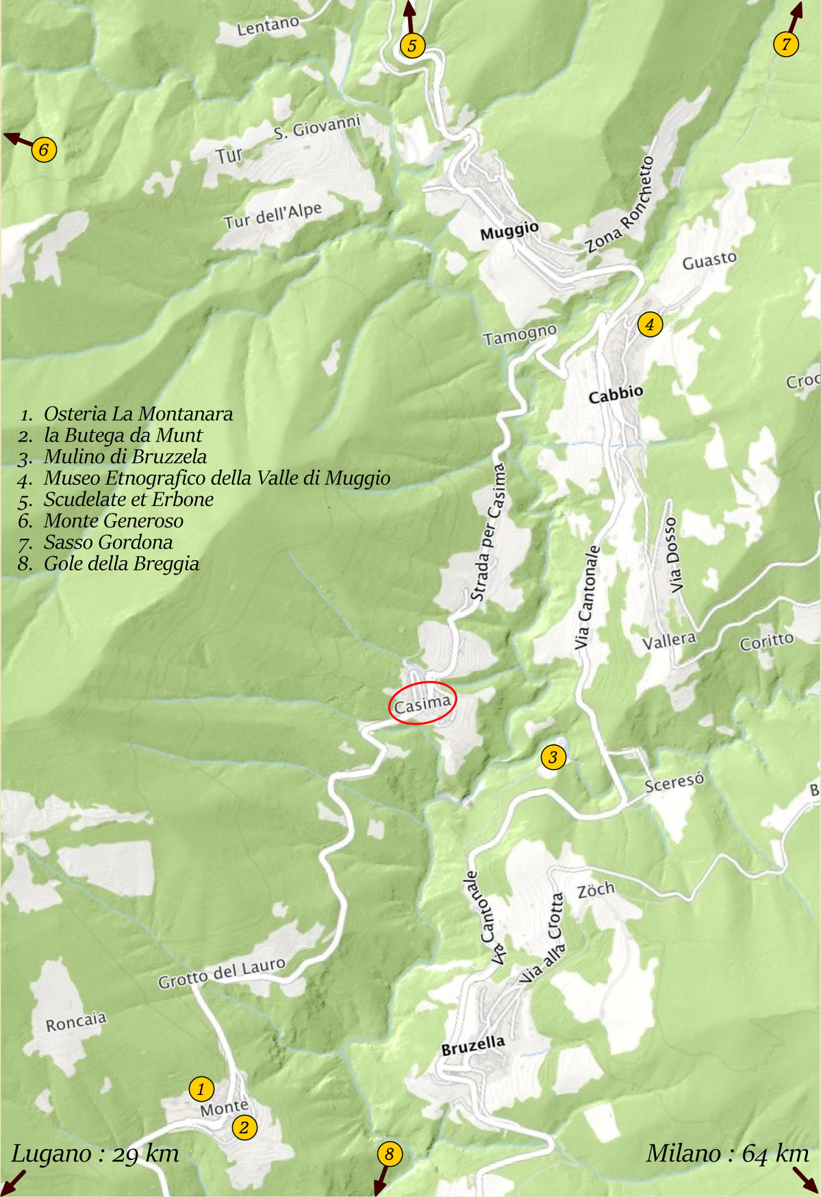 Situato a 618 metri di altitudine, Casima è un piccolo villaggio della Valle di Muggio, sulla sponda destra del torrente Breggia.